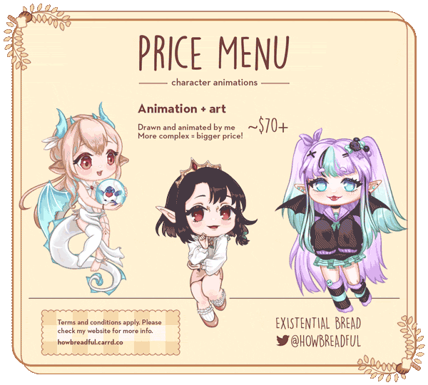 Hi there! I'm Existential Bread aka Bready and I animate emotes and other motion graphics.COMMISSIONS ON HIATUS!